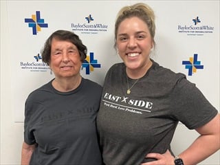 Margaret Gharis was standing in church when everything around her started spinning. It was determined the issue was vestibular, the sensory system that controls balance and movement. She was unable to drive or live alone, a disturbing consequence for someone who routinely attended a Silver Sneakers fitness program and enjoyed road trips. She was referred to Physical Therapist Sarah Brehn for vestibular therapy. Initially, Margaret relied on a friend to drive her to appointments. When her friend couldn't transport her one day, she took the bus. What Margaret didn't realize was the bus stop was a mile away from our center. Rather than turning back, she walked. With only a cane, she experienced no balance issues, which greatly restored her confidence. Margaret worked with Sarah on her balance and vision issues. She has returned to her home and is regaining her independence.